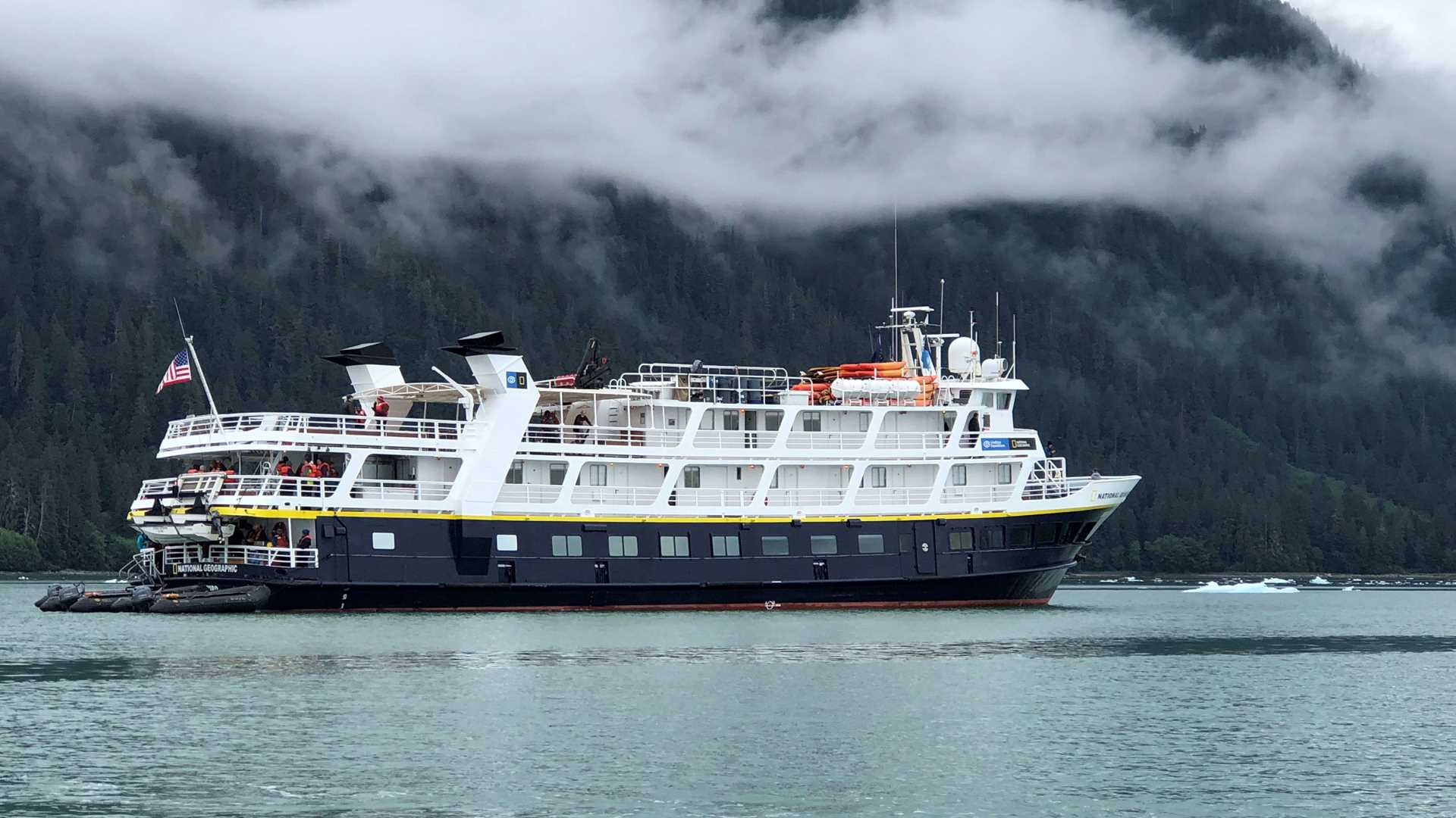 On the first full day of our expedition, we awoke to beautiful Alaska-style scenery where clouds were lifting and sometimes exposing a steep forest-filled slope. The presence of nearby floating icebergs indicated that we were in the presence of a tidewater glacier, which is a glacier that calves directly into an arm of the sea. LeConte Bay, which holds the southernmost tidewater glacier in the Northern Hemisphere, was this morning’s destination.
