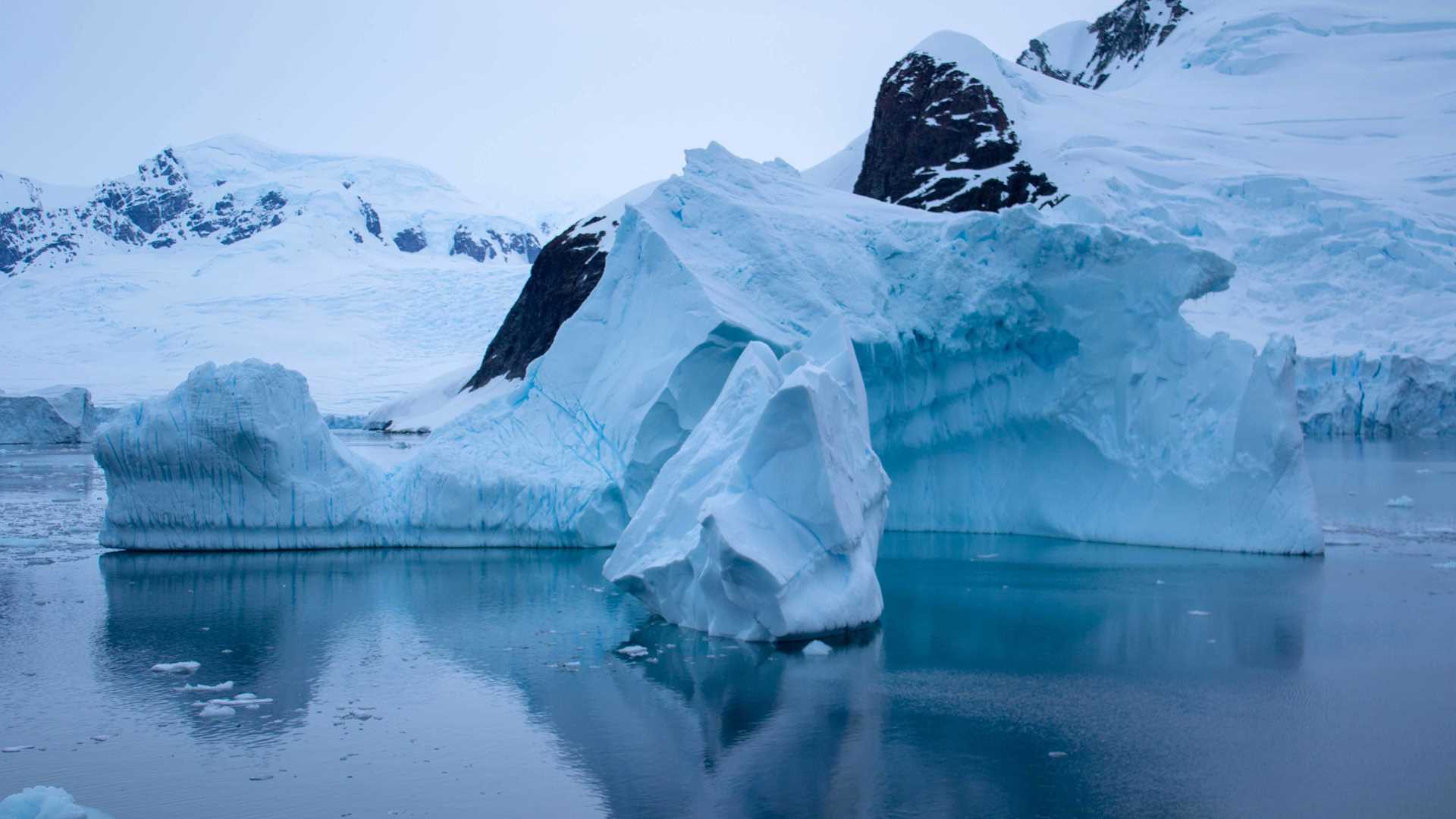The wake-up call was right on cue and a little later, the ship began transiting the most scenic of channels, narrow with mountains rise steeply on either side. All along the way, glaciers tumble down to the shoreline or hang at impossibly precarious angles and seem to defy gravity. We sighted the occasional seal and whale, and many birds. At the end of the channel, we entered the Bismarck Strait and, in the distance, Mount William and Mount Français were glowing in the morning light.