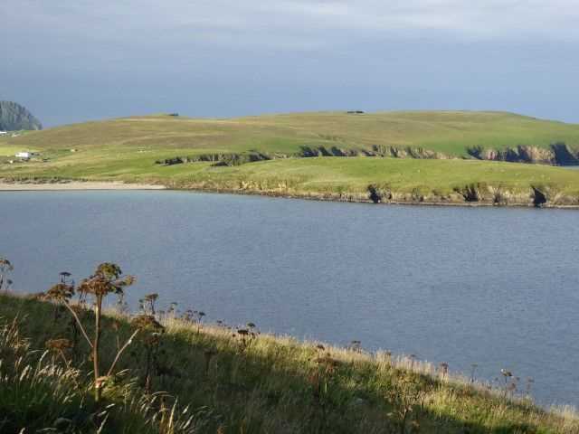 Two buses set off south towards the archaeological cornucopia that is Jarlshof, past stunning views out to the broch of Mousa which clings to an offshore island while greylag geese flew along the coast. We were told the difference between ‘wicks’ (square shaped bays) and ‘voes’ (narrow inlets) as we passed fertile hay fields and pasture where sheep and cattle grazed. Shetlanders are still very conscious, and proud, of their Norwegian heritage and it is immortalised for them in the place names which are attached to every village and feature in the landscape.