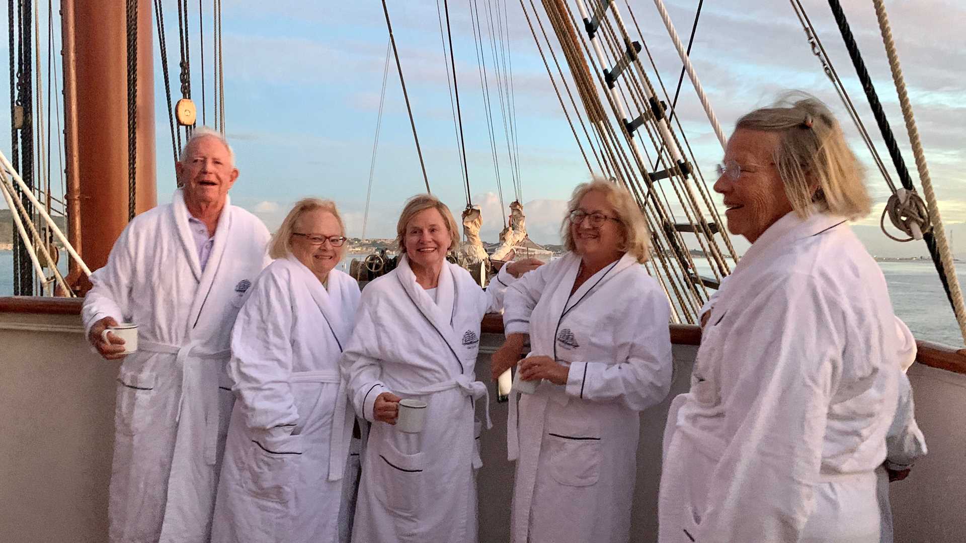Sea Cloud slipped through the Straits of Messina at sunrise, much to the delight of a group of bathrobe-clad “early risers” who witnessed our navigation through this narrow, legendary passage. The strong currents caused the ship to abruptly heel 5 degrees to port, demonstrating once again the power of Mother Nature. The winds were initially less than expected as we entered the Tyrrhenian Sea, but the 1.5-2.0 m swells we experienced were the outer edge of the strong weather front that was clearly visible off our starboard bow all morning. Captain John Svendsen gave an engaging presentation on sailing, seamanship, and the need to have a situational awareness of weather and currents so you can make a tall ship “dance” with the wind. Paula Tagle, our Expedition Leader and geologist, also gave a presentation on the tectonic nature of this corner of the Tyrrhenian Sea.
