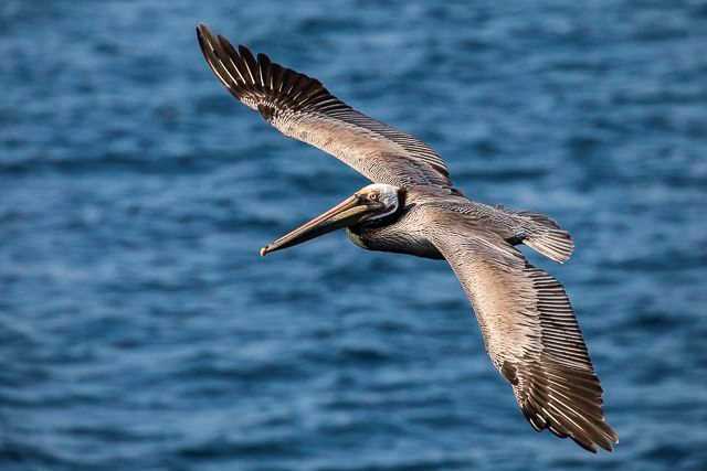 A few miles offshore, we found a huge number of brown pelicans and other sea birds busying themselves over a feeding frenzy. The dolphins in the area seemed to be driving the small schooling fish—most likely sardines—to the surface, where the birds were then able to scoop them up from the sea surface. It was a pure maelstrom of wings, beaks, and splashes out there, which made for excellent photography.