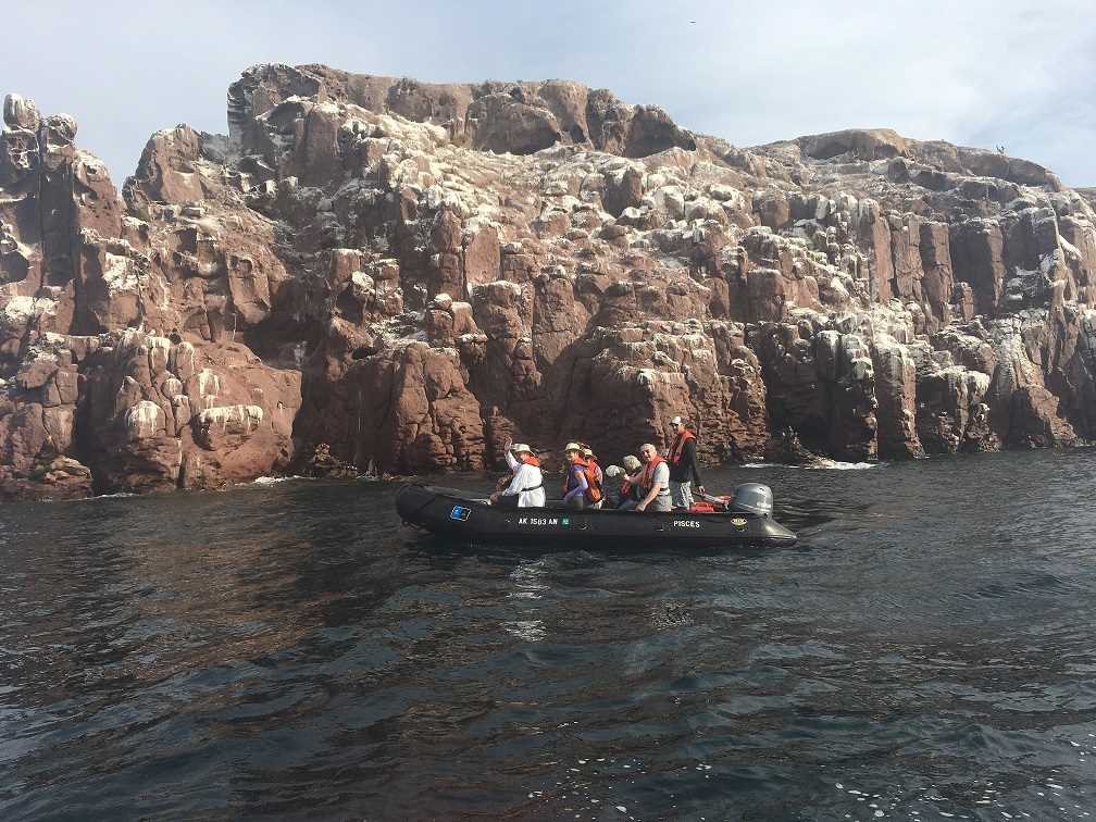 Arriving to Los Islotes in the early morning, the National Geographic Sea Lion anchored in the lee of the two-rugged guano covered rocks. Sunny skies and a fresh breeze from the north along with mild temperatures were forecast for the day.