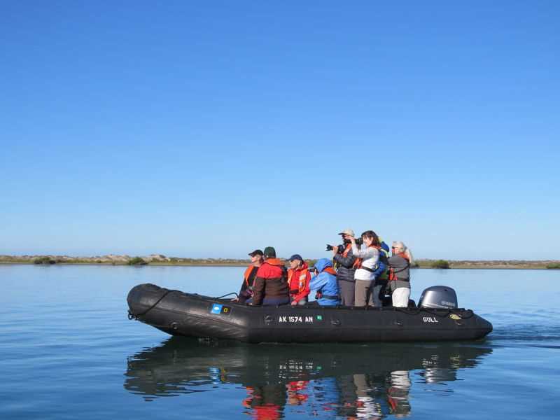 Guests disembarked from the National Geographic Sea Bird today for gray whale tours with looks of excitement and returned to the ship with a glow of happiness. On the second week of our expedition, we were thrilled with a day full of gray whale mother and calf pairs. Gray whales make a 5,000 mile journey to Baja California’s coastal lagoons to give birth and breed during the winter months each year. Once a mother has given birth, she and the calf will remain within the protected waters of the lagoon for three months, giving the calf the opportunity to grow and gain strength before the pair begin the same 5,000 mile journey back to the Alaskan waters gray whales call their “summer home.