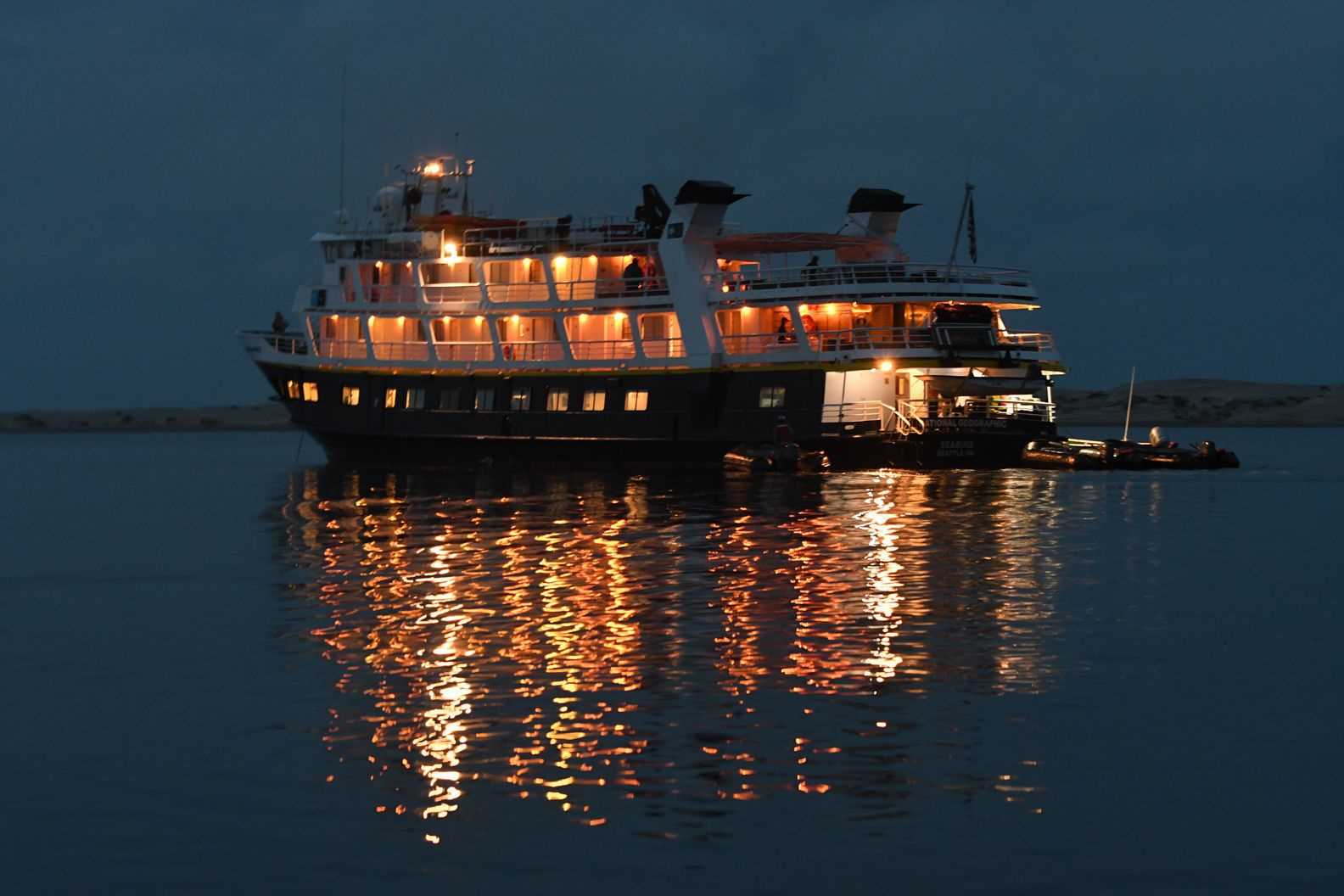 This morning, National Geographic Venture docked at the interesting port, San Carlos. From the 1940s to the 1990s, the port was used for loading agricultural products and fertilizers from the nearby Santo Domingo Valley. Nowadays, San Carlos is basically a place for loading sardines from a local cannery. It is also an important tourist base for whale-watching, principally mating gray whales. At the port, all guests and staff boarded buses to Lopez Mateos, a town located near the northernmost tip of Magdalena Island. The buses traveled across Magdalena Plain, a section of the Sonoran Desert that receives a lot of moisture in the form of dense fog from the Pacific Ocean. Lichens and orchillas, a type of flowering plant, give the desert a phantasmagoric appearance. Guests and staff enjoyed spotting numerous birds, including crested caracaras and kestrels. Once in Lopez Mateos, we boarded local pangas for whale-watching. During two rounds of whale-watching, we encountered several whales close to our pangas. However, most of the whales were preoccupied with traveling, searching for mates, or just finishing their time of reproduction and thus exiting the lagoon. In reality, the whales were not interested in interacting with the boats and their excited cargo, but we had many opportunities to observe the behavior of these magnificent animals. In town, we all delighted in a delicious fish lunch, ‘pescado zarandeado.’ We enjoyed exploring the local dock with its many colorful shops and crafts, and we admired the wonderful sculpture of a cow-calf pair of gray whales.