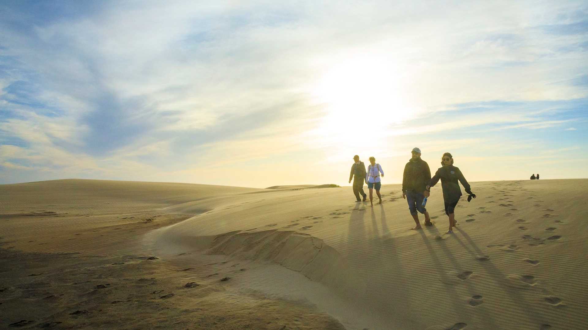 We awoke in Boca de Soledad to a clear and sunny day. With high winds and large swells, morning whale-watching trips were challenging. We ventured forth and finally spotted a whale. It spyhopped near one of our pangas and then slowly approached so we could get an up-close-and-personal view. It was magical. The whale led us on a merry game of hide-and-seek, popping up here and there for the next hour. Of course, the whale was destined to win this game! We returned to National Geographic Sea Bird via a calm mangrove area. We viewed several species of wading birds and the skeletal elements of a long-dead whale that were partially buried in the shallow sediments. During our whale-watching, some of us went ashore to the nearby beach to ride fat-tire bikes and/or to walk among the dunes. It was a special treat to watch two eaglets attempt their first flight under the watchful eyes of their parents. It was obvious that the lessons would continue tomorrow, and perhaps for another day or so! After lunch, we went back to the Boca for another round of whale-watching in challenging conditions, but we did not see any whales. No matter…it was relaxing to simply bounce around in a panga. Again, we watched for birds on the way back to the ship. We saw large numbers of terns, brown and white pelicans, juvenile gulls, and cormorants on a sandbank. In a different mangrove area, we were able to get very close to juvenile and adult (male and female) frigatebirds. After returning from our whale watch, we went ashore. Some of us walked among the dunes or along the beach, either with or without a naturalist. Others rode the fat-tire bikes on the hard-packed intertidal sand. The wind and swells forced us to relocate the traditional beach BBQ to the ship’s dining room, where we were entertained by Los Coyotes de Magdalena. A guest and a crewmember celebrated their birthdays by bashing the traditional piñata. The treasure trove of goodies within elicited a wild scramble! After dinner, most of us went to the beach. We enjoyed a final walk and a traditional bonfire with s’mores. Another day drew to a close with memories burned into our minds.
