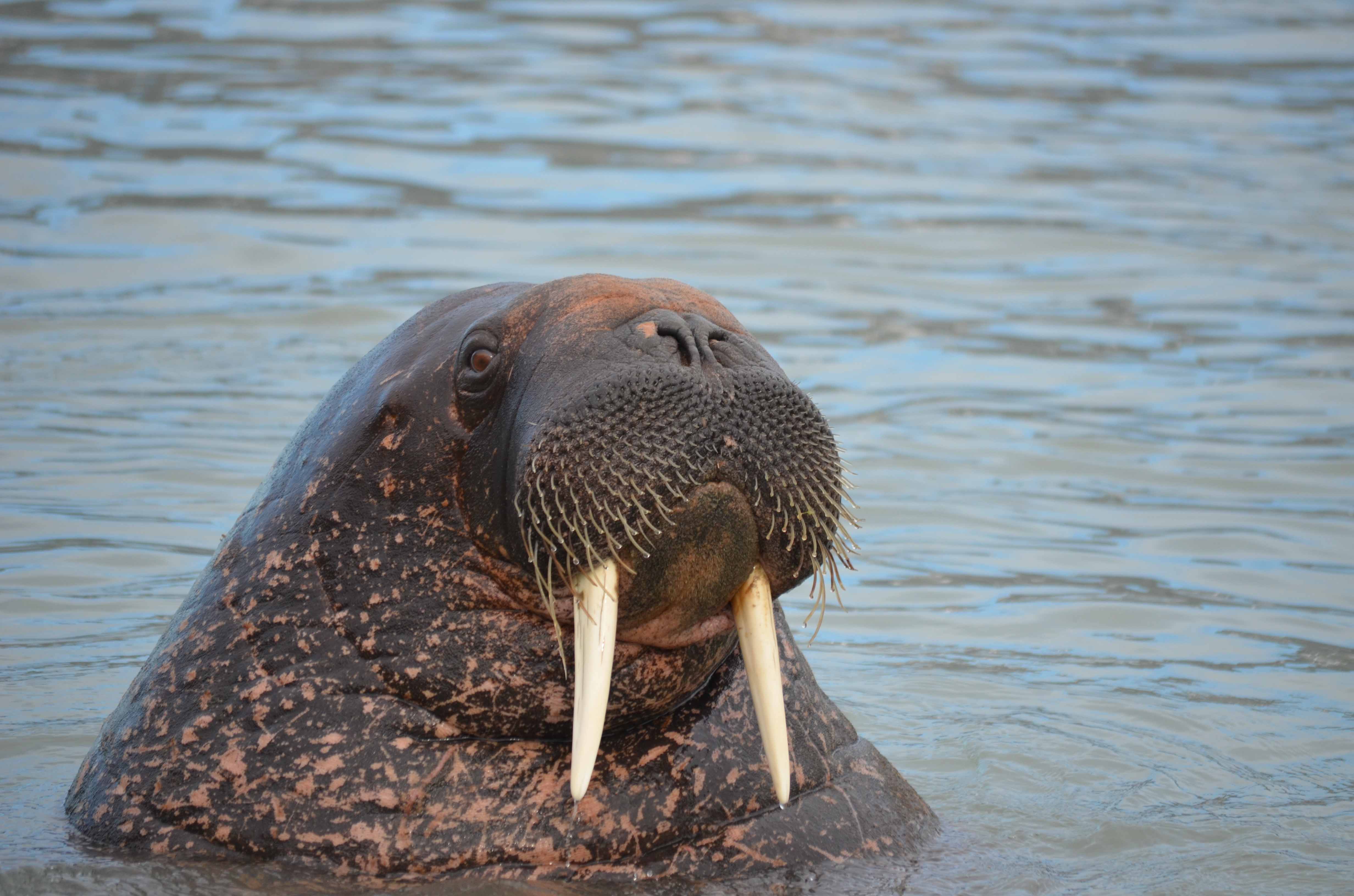 Magdalenefjord and Trinity Harbour are not only astonishing in terms of the landscape and the history, but also for the nature. Not far from Trinity Harbour we found the wrinkled brown and pink hides of two dozen walruses lazing on the shoreline. Immediately distinguishable by their long white tusks, grizzly whiskers, and rotund blubbery bodies this herd of walrus seemed entirely unperturbed by our appearance. Indeed about six of them even came over to the Zodiacs to check us out!