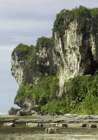 Today we made an unscheduled expedition stop at yet another kind of island, the latest in a series of special landings to take advantage of special opportunities. Makatea an uplifted coral atoll which is a part of the Tuamotus and lies at the southwest margin of the group. But it is very different from the others. Its age is intermediate between the high islands of the Societies and the more ancient atolls to the northeast, and unlike them it stands high above the ocean. As we approached, Makatea presented an impressive profile with vertical cliffs of coralline limestone rising almost directly out of the surrounding sea. These cliffs, which were once the outer wall of the atoll’s reef, rise over two hundred and fifty feet to a heavily forested plateau, apparently as flat as a tabletop. In fact there is a significant depression in the center of the island, where the lagoon once lay. The entire island perfectly preserves the form of the long-ago atoll, now thrust high above the sea by tectonic forces in the mantle of the Earth, far below.