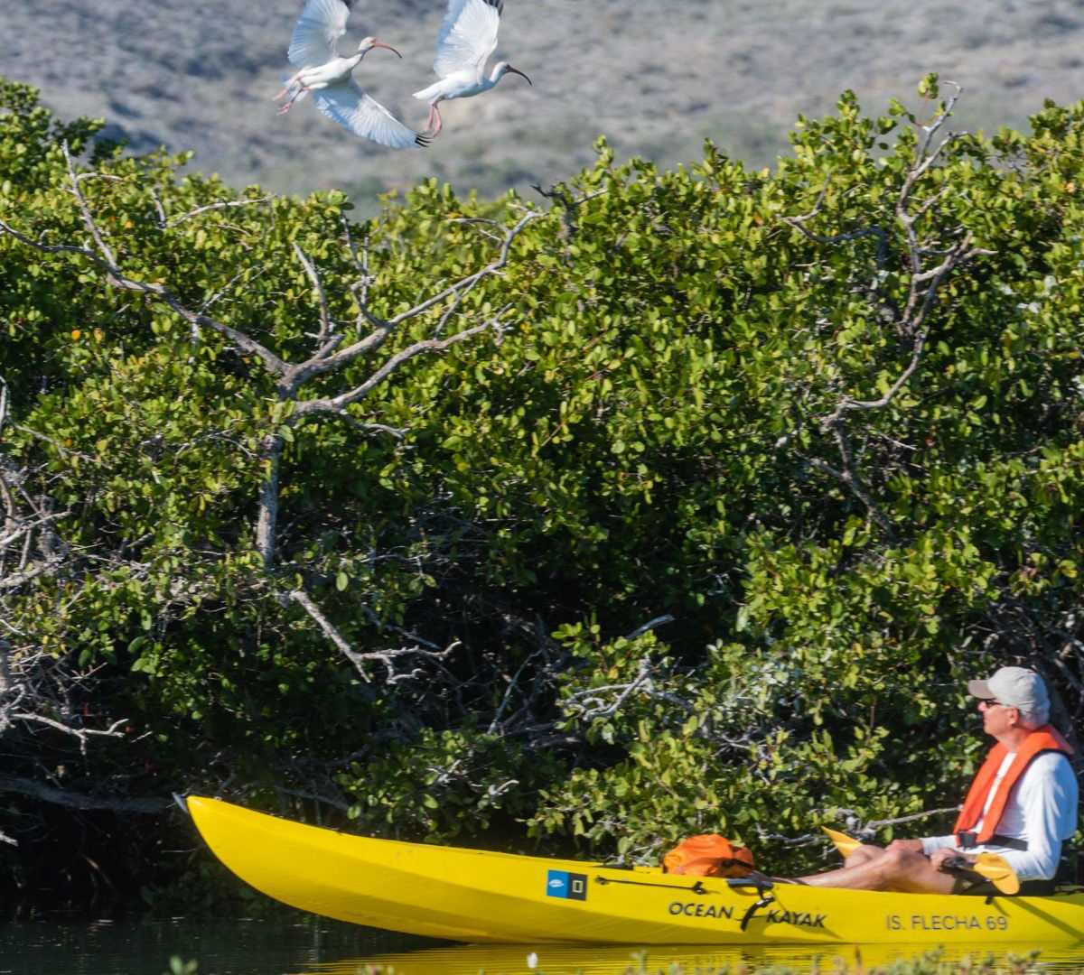 The final day of our expedition on National Geographic Venture was sunny and packed with activities, both onboard and off. From San Ignacio Lagoon, we sailed down the coast overnight and entered Magdalena Bay, another gray whale calving lagoon along the Pacific coast of the Baja California Peninsula. In the morning we had our choice between kayaking or a Zodiac cruise through a mangrove channel, where an array of herons, egrets, and shorebirds were spotted.