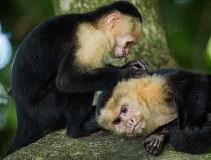 After anchoring most of the night, the National Geographic Sea Lion got underway early this morning and sailed a short distance to our anchorage off a beautiful beach at Manuel Antonio National Park. The sun rose just before 7 a.m. with 80-degree temperatures and about the same in humidity. The view from the ship was stunning—white sandy crescent beach with all manner of tropical trees and forest beyond. The sound of howler monkeys and early bird calls beckoned us ashore… spinning legs over the side of the boat landed our feet into ultra-warm salty water. Wow! A tropical paradise. It is easy to see why Manuel Antonio is one of the most visited national parks in Costa Rica—amazingly beautiful with abundant wildlife. The first part of the morning was dedicated to naturalist-led introductory walks to learn about this amazing tropical moist forest and hopefully catch glimpses of wildlife. We were rewarded with fun sightings of capuchin and howler monkeys, raccoons, agouties, two-and three-toed sloths, lizards, iguanas, and many bird species. Yellow-crested caracaras were building a nest in one of the palm trees above our beach station, and they spent a lot of time flying over the beach. Birds of prey are always a marvel to watch!