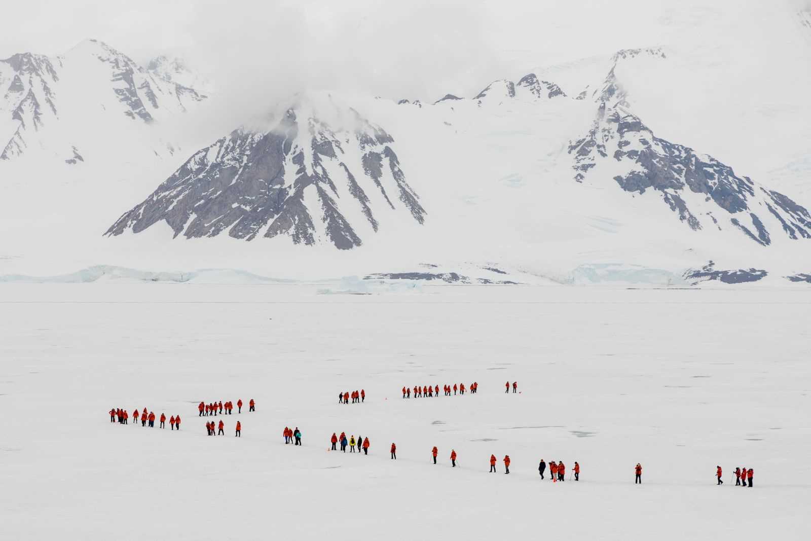 During the early afternoon National Geographic Explorer continued southward through large areas of loose drifting pack ice with lots of lounging Weddell and crabeater seals. Eventually Captain Skog brought us into Neny Fjord where he drove the ship into the “fast” ice (ice which is still frozen fast to the shore). A gangway was lowered, and the ice proved strong enough to allow us all to walk off the ship and out onto the frozen sea. A great experience for all involved. We had also reached our farthest south at 68 degrees 14 minutes of south latitude.