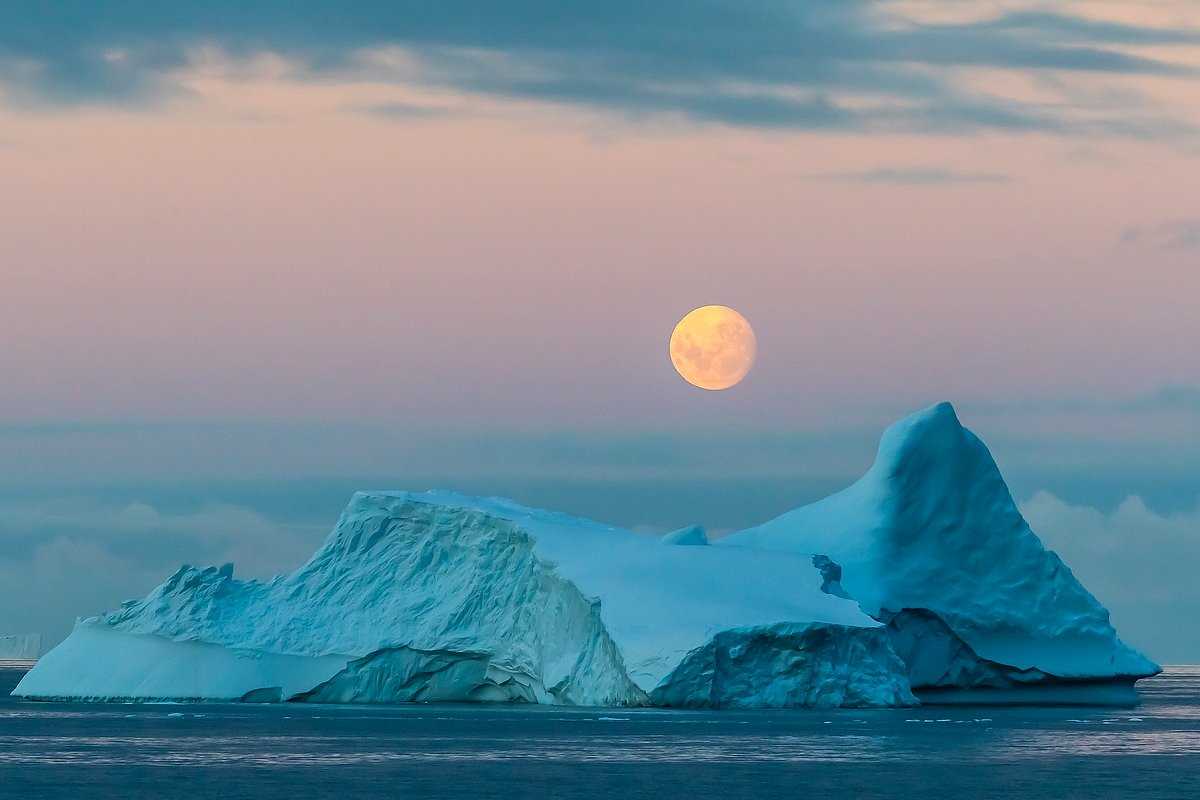 In between we kayaked in Mikkelsen Harbour, cruised amongst chinstrap penguins and humpback whales in Cierva Cove and took the polar plunge amongst that same ice. After dinner captain Martin Graser “parked” National Geographic Orion in the fast ice in Wilhelmina Bay and we all disembarked to play with gentoo penguins, Weddell seals, drink champagne, and watch the 97% full moon rise over glacier-covered mountains.
