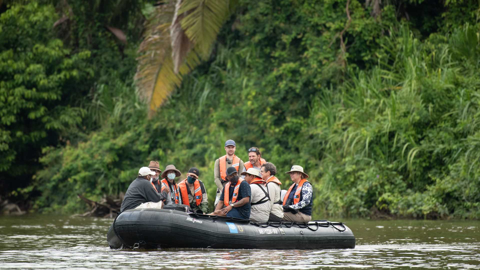 Around the next bend, we spot two howler monkeys resting at the outer edge of the canopy. While the howler monkeys rest during most of the day, the males make deep guttural calls to mark their troop’s territory. We continue down and Leonardo shares stories of growing up along the river, hunting, fishing, and harvesting medicinal plants. Before we depart, we turn the motors off, drift down stream, and take a moment to appreciate the sounds of birdcalls and territorial howler monkeys surrounding us.