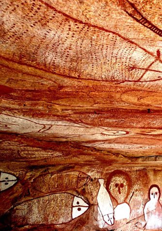 After a tasty lunch savored on board, we headed to Raft Point, a place characterized by impressive geological formations of pink and orange sandstone cliffs plunging into the sea of Doubtful Bay. Here, we had the opportunity to see the mysterious and intriguing Wandjina rock art. Wandjinas are the mystic ancestors of the Worrora and related Kimberley Aboriginal people, including the Ngarinyin and the Wunambal tribes. Wandjinas are considered to be the creators of human descendants, the land and laws, and are still able to exert their powers. They are represented by figures displaying large haloed heads with no mouths.  They are painted on sandstone surfaces, usually facing west, or on the walls or ceilings of caves and shelters. Ochres in various colours of reds, browns, yellows, whites and blacks can be utilized as pigments. The Wandjinas are intrinsically linked to the mythological life, social organization and seasonal movements of Indigenous Kimberley people. We were fortunate enough to meet some of the original custodians of the land that explained and shared their beliefs and stories about this special place and unique rock art. During our ascent to view the art, we were greeted by the iconic symbol of The Kimberley, the Boab tree (Adansonia gregorii).  This tree is related to the Madagascan and African Adansonia species known as Baobabs. Though not exceptionally high (up to 15 m), they can reach a massive girth of up to 20 meters. Standing tall as sentinels along the path, some of the specimens are considered to be over 1500 years old. This is The Kimberley, a place of magnificence that will touch your spirit, and each day will take you into a new exhilarating adventure.