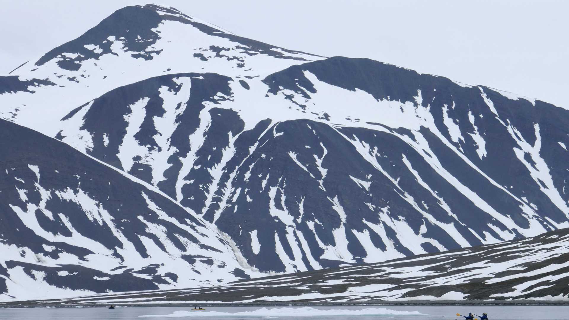 We’re five days into our trip, and after dining on chef Sarah’s phenomenal cuisine, everyone was keen to stretch their legs and spend the morning kayaking and hiking in a tranquil bay. Kayaking was a chance for everyone to soak in the quiet of the Arctic, meandering around a sheltered bay with a landscape of snow-topped mountains with moody clouds hanging over the peaks. After kayaking, with no time to change, the Zodiacs dropped us at a hunting cabin at the mouth of the bay, where a dozen arctic terns were displaying and plunge diving in the shallow waters, regularly catching fish and trying to entice a potential mate. One of the groups was lucky enough to find a purple sandpiper nest during their hike. Luckily, the bird alerted them to the presence of the nest, as they do a broken wing display to lead away potential predators. Another group trekked through deep and slushy snow, following the leader’s tracks, to find rocks encrusted with fluorescent looking lichens. Everyone went down on their knees with their cameras to practice macro photography!