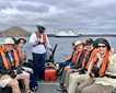 During breakfast, Expedition Leader Russ Evans took a scout boat ahead to see if the walrus we hoped were hauled out just inside the entrance to Musk Ox Fjord were indeed there. They were, and the expedition team began to prepare for a landing. But before the first staff boat was even lowered, the walruses had all moved into the water for their breakfast, and a visit to the beach was deferred to a later time.