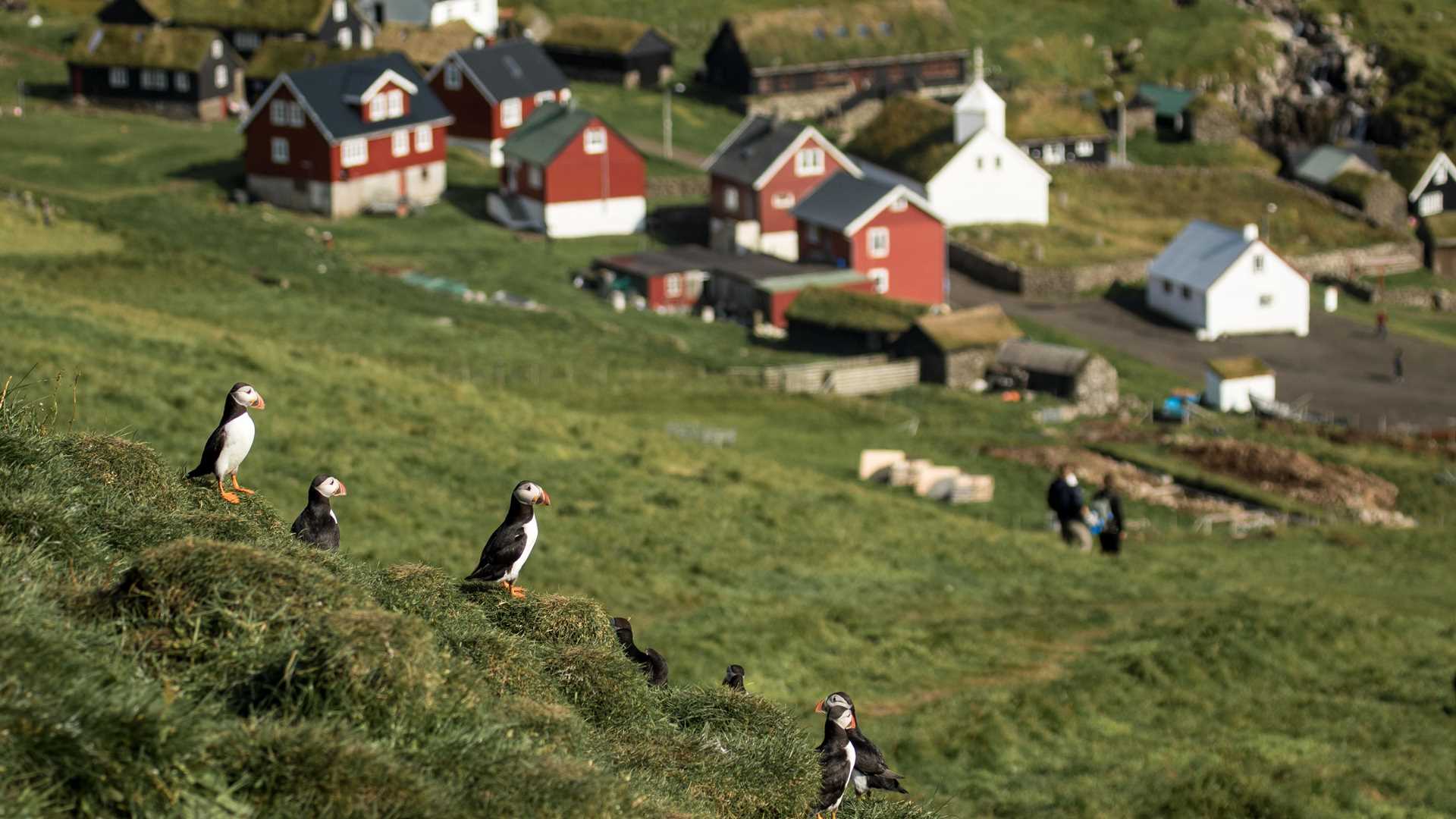 There wasn’t a single person aboard who wouldn’t say that today was extraordinary. The morning started off with very close visits from a large fin whale (the second largest animal on the planet) followed by a very rare sighting of a northern bottle nose whale. We had three wonderful presentations as we finished the last of a nearly 230-mile journey from Iceland to Mykines. Mykines, is the westernmost of the Faroe Islands and has a year-round population of 14 humans. Nearly 20 of us decided to put our legs to the test and hike up the steep ridge line above town, while others walked the streets with our National Geographic Photographers; Diane and Len. The steep cliff faces were covered with puffins who seemingly didn’t mind our presence. In addition to the phenomenal scenery and wildlife encounters, the day was extra special as we were serenaded by Kata; a group of five beautiful local women who sang local folk tunes.