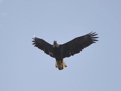 A pile of seabirds just above the ocean surface alerted us to a nearby feeding frenzy. Herring no doubt, crowded together in a bait ball attempting to be safe by getting to the middle of the spherical configuration. Joining in the frenzy were about a dozen bald eagles, both mature an immature as differentiated by their plumage. Although their white heads and tail feathers said some had seniority, that didn’t count at the feeding table as it was every bird for themselves. So amazing to see a bald eagle burdened down with fish trying to “swim’ by beating its wings against the ocean surface in an attempt to distance itself from the frenzy and take flight back to shore.