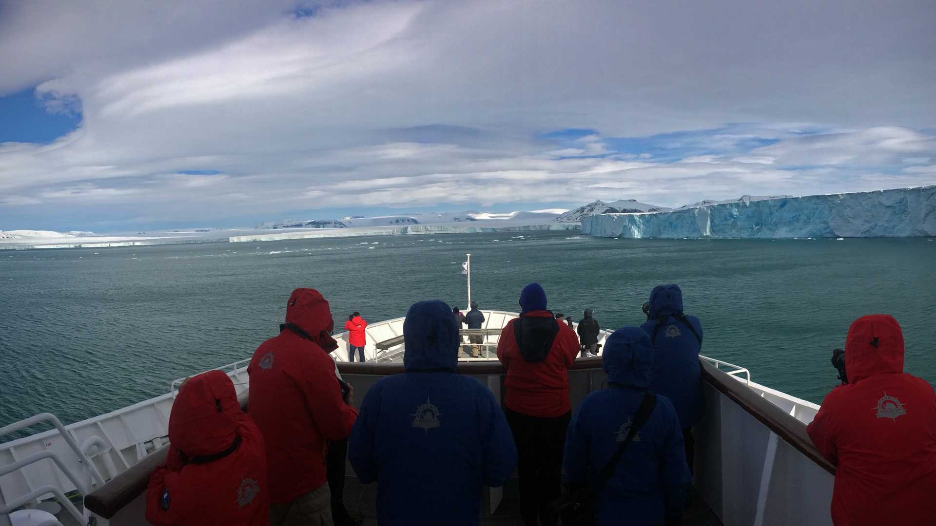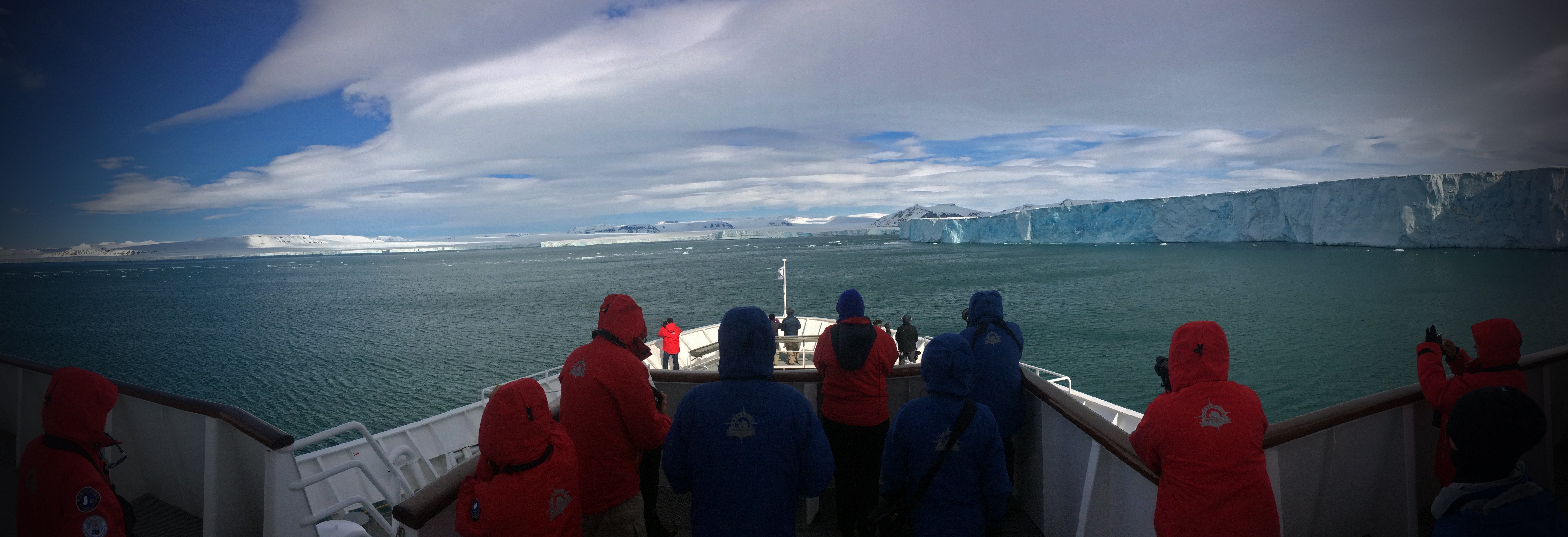 We had to leave the Negribreen glacier and the large icebergs that had calved from its face in our wake—we had a destination to reach for our afternoon activities. Continuing our navigation through the calm and sunlit waters of the eastern coast of Spitsbergen we enjoyed another fascinating talk from our Global Perspectives guest speaker Dr. Joe MacInnis as well as an introduction to Lightroom from one of our photo instructors and naturalists Doug Gould.