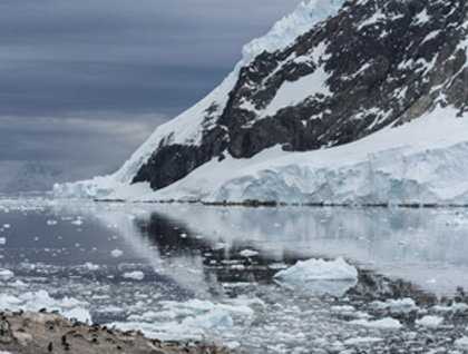 Blue and white icebergs passed our windows as we awoke this morning. Some looked out of portholes and saw the evasive and discrete dorsal fins of minke whales glide through their silver world. We were surrounded by glaciers. These rivers of ice dropped huge cascades of ice particles of all sizes into the sea around us. The world was blue and white. Even the dark rock mountainside that peaked through the ice from time to time had a trace of blue. Pack ice guarded the shoreline but our nimble Zodiacs made it to a site named Neko Harbour after a factory whaling ship that worked these waters 100 years ago - this bay was extraordinary. We watched Gentoo penguins go about their nesting duties and deliberations. “That is MY pebble. Don’t take it,” they seemed to say - yet the thievery went on throughout the colony. Conditions were perfect for a hike to the summit of a nearby hill and the chance to slide down a truly steep decline. Screams of delight and a touch of terror sprang from the throats of the daring few. The ride lasted moments but the memories are timeless.