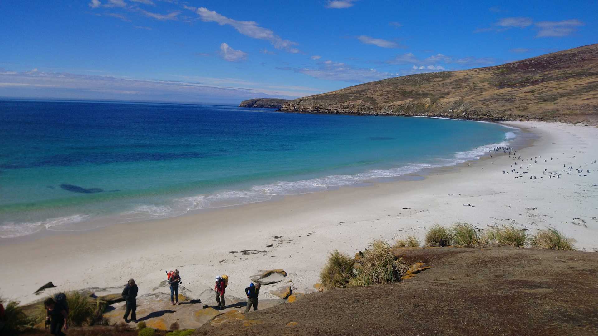 Today was our final opportunity to go ashore during our epic 30-day voyage. We made the very best of it, with several landings and some people opting to stay ashore all day. New Island is home to two million pairs of slender-billed prions, several penguin and sea lion rookeries, and a black-browed albatross colony. Now a wildlife reserve, the plant and birdlife ashore is spectacular. Wardens of the Falklands Conservation welcomed us, and we had a wonderful day ashore in sunny weather.