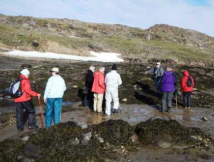 During the afternoon we sailed to a place recommended by our Canadian ice pilot, Ray Jourdain—a small inlet on a small island called Noble Inlet. Just as walks and hikes were being organized, the first polar bear of the expedition was spotted by one of our guests! The bear was napping on land and was woken up by our approach. He quickly settled back into his summer slumber as we learned about the Arctic Baffin Island ecology by the naturalist on shore. Many of the summer flowers were still blooming including the moss campion. Some groups stayed closer to shore and enjoyed learning about the tide pools. Once back on board we all enjoyed the Captain’s welcome aboard cocktail party and dinner.