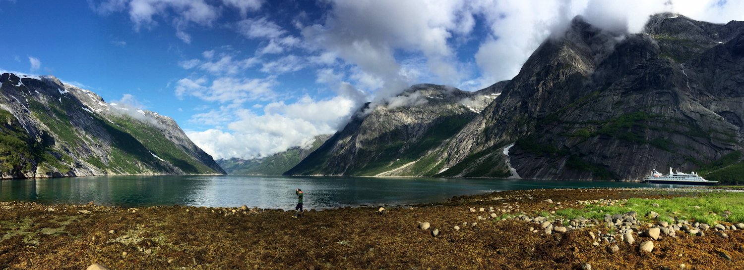Before breakfast, National Geographic Orion entered the stunning landscape of Nordfjord.   Coastal Norway is filled with a myriad of gorgeous fjords, and this certainly is one of the most dramatic. The sun broke through the clouds, exposing high peaks with waterfalls cascading down as far as one could see. We made it to the end of the fjord, and divided to explore for the morning.
