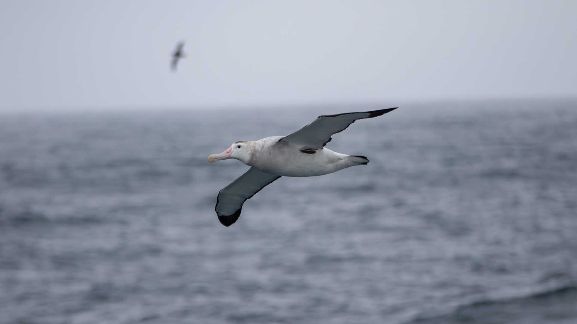 National Geographic Endurance moved west today into the relatively milder waters of Falkland Plateau—moving out of the Southern Ocean and into the South Atlantic. Foggy conditions frustrated our sea-watching efforts, but we still saw some humpback whales and hourglass dolphins despite poor visibility. By evening, the fog lifted enough for us to enjoy views of wandering albatross and their smaller cousins, including various petrels.