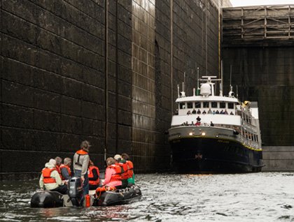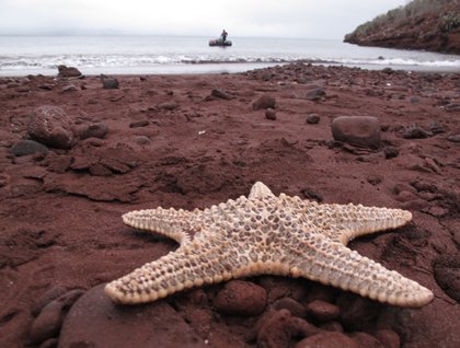 As we left the island of North Seymour and navigated to Rabida Island we got fitted into snorkeling gear in preparation for the afternoon activities. Our afternoon was very interesting and began with kayaking along the red cliffs of Rabida Island. This was a great experience as we encountered several kinds of sea birds, sea lions, and sea turtles. For our guests who wanted to go in the water we had a great snorkeling outing, we saw colorful fish and very playful sea lions that entertained us all along the way. We also snorkeled from the shore. And for those who wanted to explore the world beneath the water while staying dry, we had an outing onboard the glass bottom boat.