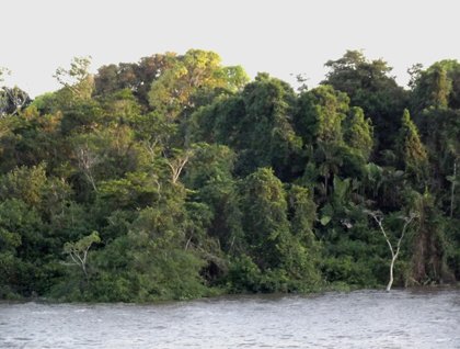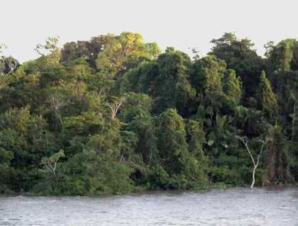 As our vessel came closer to the eastern shoreline, we could see it presented us with an impenetrable wall of greenery. This flooded edge of the forest is composed of water-resistant trees and all sorts of water plants. It was surprising to suddenly see river people appear occasionally from out of nowhere, it seemed, in small dugout canoes in order to wave to us and ride over our wake. Farther upstream, we began seeing a few widely scattered stilt houses along the forest edge. There were also inviting little tributaries that led into the dense tropical rain forest, which seemed to be beckoning to us. Some people would look at all this and think it something of a “Green Hell,” while others, such as us Lindblad Expeditions naturalists and guests, see it as a kind of “Green Heaven.”