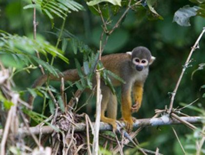 We have a delicious breakfast on board the skiffs in the shade of a large fig tree. Meanwhile, pink dolphins surface behind us, blue-and-yellow macaws fly above us, and squirrel monkeys pass through the tree we are tied to. What ambiance!