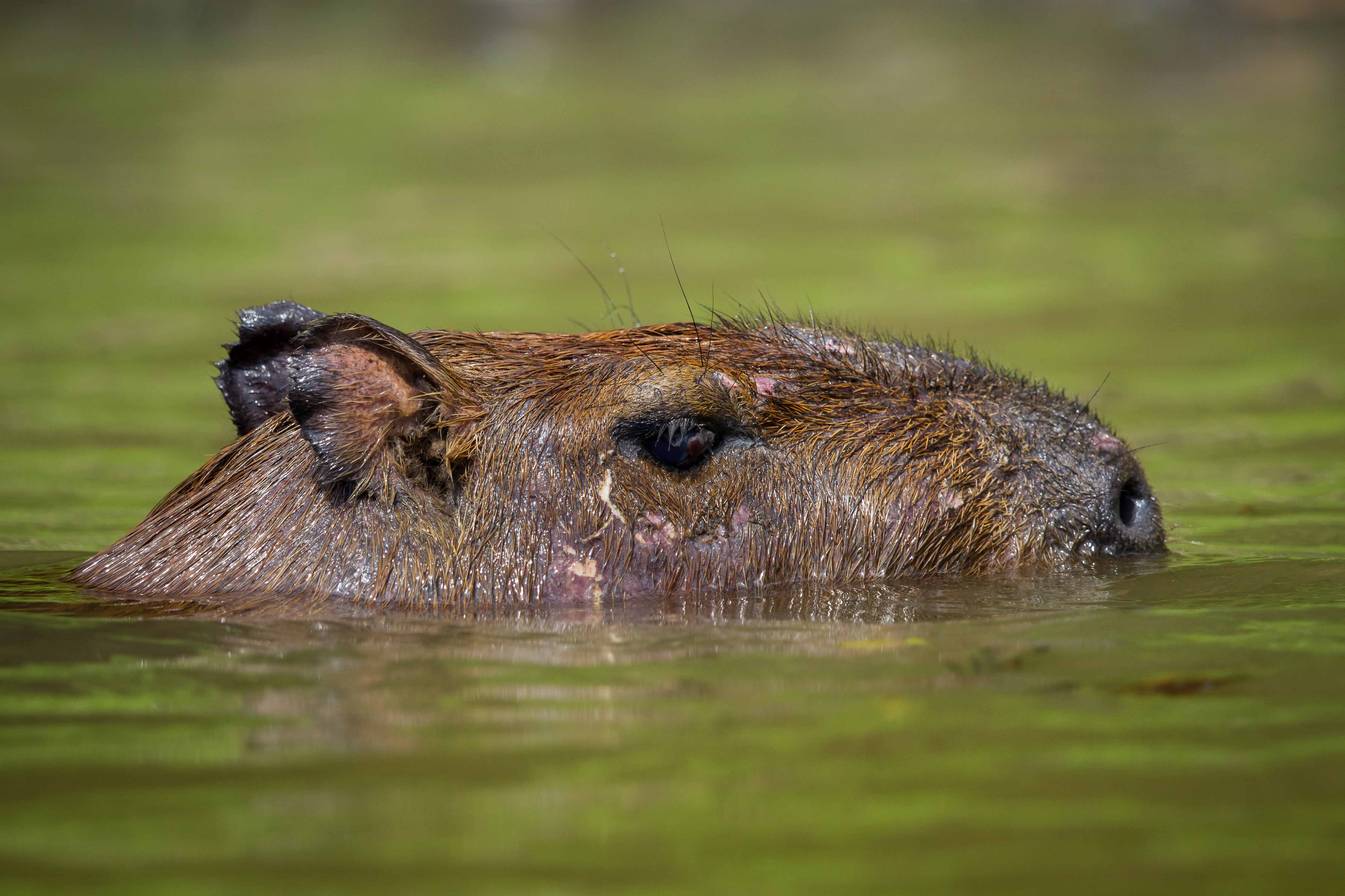 After lunch, we continued exploring a little bit more inside Pacaya River. A capybara was seen so closed to the river land. This huge rodent was hiding under several fallen trees and gave us enough time for shooting.