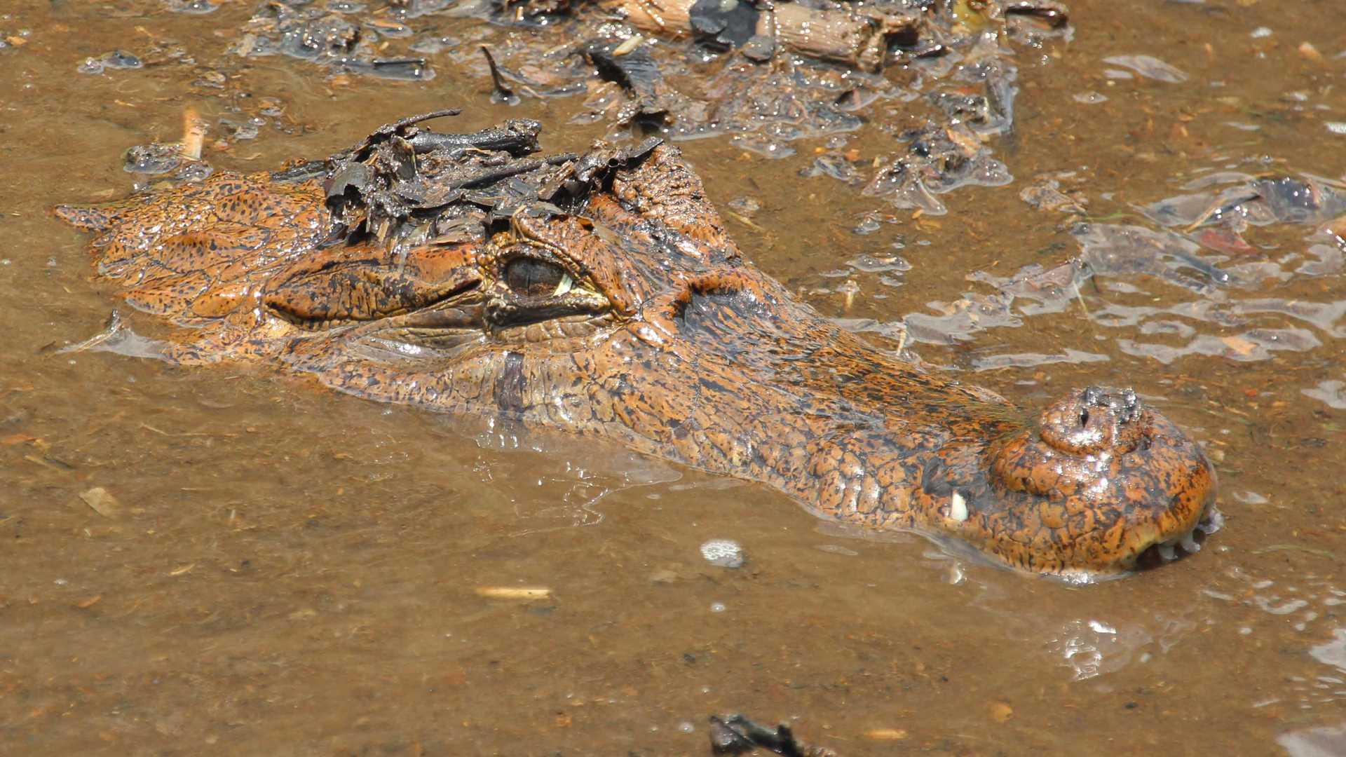 In the reserve, we traveled up the Pacaya River and saw many of the species we have become familiar with over the last week. Blue-and-yellow macaws, cocoi heron, spectacled caiman, squirrel monkeys and the enormous jabaru stork. However, we also began seeing things that were new to us on this journey, beginning with a large group of bizarre-looking hoatzin. Distantly related to cuckoos, these birds look more like prehistoric dinosaurs. As we watched them from the skiffs, they were aware of our presence but did not immediately fly away like most birds. Instead, they made a variety of odd sounds and cautiously moved to adjacent branches, but almost as if they were just going through the motions but didn’t really care that we were there. Apparently, people do not eat them because of their bad-tasting flesh, so we may not have appeared as much of a threat.