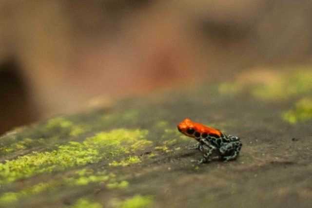 After this ride, we came back to the Delfin II for breakfast and quickly got ready to visit Casual trail. This is a community-managed trail, where local guides help us to spot various native species of frogs, snakes, birds, plants and insects. My favorite sighting was a juvenile anaconda, which we found resting on a shallow river bank. Anacondas can reach up to 10 meters, or 30 feet long, and the one that we found was about 6 feet long. Female anacondas give birth to living baby snakes, not eggs. Mother anacondas can give birth to up to 50 young anacondas, which are born with about 30 inches long. Our guide explained that this particular individual was molting, shedding its old skin. After Casual trail, we had our first presentation of a series of three workshops which we do as part of our onboard pPhotography program. While we were almost finishing the presentation, the captain interrupted us to let us know that there was a tamandua, better known as anteater, just outside by the stern of the ship, so everyone agreed that we will continue later on. This surprise was really worth it!