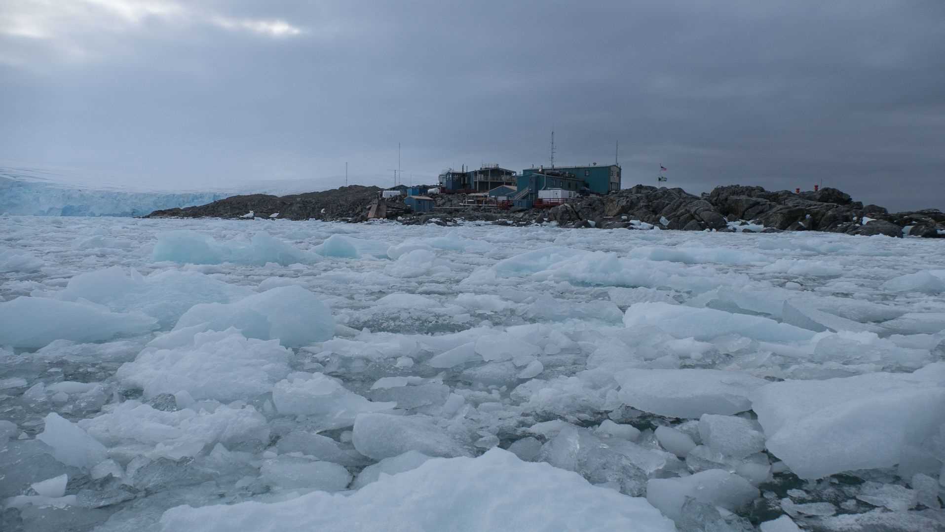 Some days on expedition are more challenging than others for the staff and crew. Today’s visit to Palmer Station was one of those days. Palmer Station is the smallest of the three United States Antarctic Program scientific research bases and located in Arthur Harbor on Anvers Island. When we arrived last night, we already had a sense of the difficulties we might face getting everyone ashore. The harbor was full of closely packed brash ice which swirled around the ship and jostled against the hull all night. In the morning, the ship was surrounded by jumbles of ice chunks recently calved off the nearby glacier. The ice crackled and rolled as our Zodiacs inched toward the shore slipway, which had to be cleared constantly by running the outboard motors of several boats. Our expedition leader waded in up to his waist to help keep the slipway clear with a shovel. He looked as if he was enjoying himself immensely.