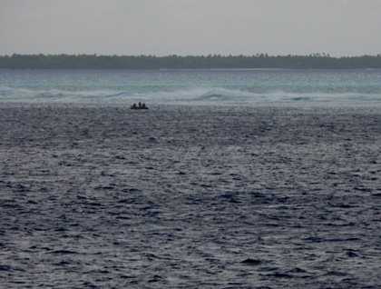 There were several small passages through the reef for our Zodiacs, but the swells were strong and conditions weren’t ideal to get inside the coral reef. The tide was beginning to rise, and that only made our chances of visiting the lagoon even slimmer.