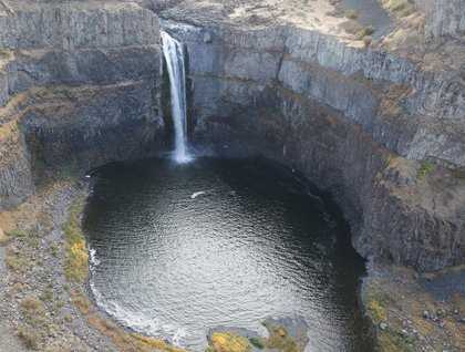 Before the Pleistocene, the ancestral Palouse River was farther north and paralleling the Snake River before emptying directly into the Columbia River. But then came the floods. Stupendous floods. Not one, not two, but perhaps 100 of them. Where did all this water come from? From the giant continental glacier grinding away in Canada, a tongue of ice 2,000 feet thick dammed the Clark’s Fork River. Eventually a huge lake formed (Glacial Lake Missoula) but the ice dam became unstable and catastrophically collapsed releasing a flood of biblical proportions. The flood waters overtopped the ancestral Palouse valley and found a route to the Snake River. Racing water and ice scoured the land, ripping away blocks of basalt, sweeping up the soil and creating the scablands and the stunning Palouse Canyon and leaving the Palouse River’s old course abandoned and dry.