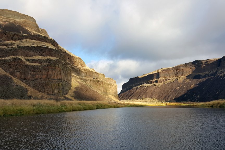 Sunrise revealed a blue sky and puffy white clouds over the beautifully stark cliffs of the Palouse River Canyon. We got an extra early start on the day’s activities, loading our expedition landing crafts at 8 AM. Some folks headed up to Palouse Falls via a short coach ride. Others took an expedition landing craft cruise with us naturalists up the Palouse River. A few people even went paddling around in kayaks. The chilly morning air warmed in the golden sunlight and all of us had wonderful experiences today.