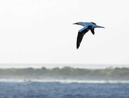 We sighted Ducie early this morning and as expected, a strong dominant wind and impressive surf precluded us from landing on this very exposed low island of only 3.3 square km. As we approached land we could observe a variety of sea birds that breed in large numbers in the sparse vegetation characteristic of atolls. From the observation deck some of our bird experts identified petrels, a few tropic birds, and white terns flying close to the ship at great speed due to the quite strong winds. Photography was difficult but the spectacle of these fantastic birds fighting the wind was rewarding.