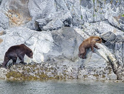 The afternoon was one of exploration. Cruising the waters in search of charismatic mega fauna, we struck gold finding a breaching humpback whale in the distance. It was a youth, perhaps misbehaving as its mother logged on the surface. Turning into Kasnyku Bay, we came upon a mighty waterfall. As magnificent as it was, its glory was stolen by the two brown bears hydrating themselves at its base. Such days are hard to measure, but as they end we rest with a full understanding of the impact of the natural world around us.