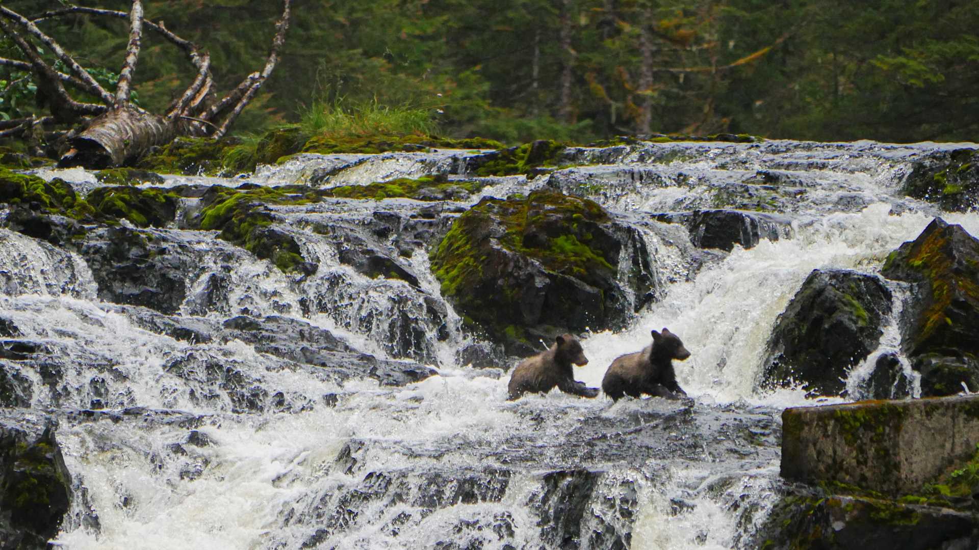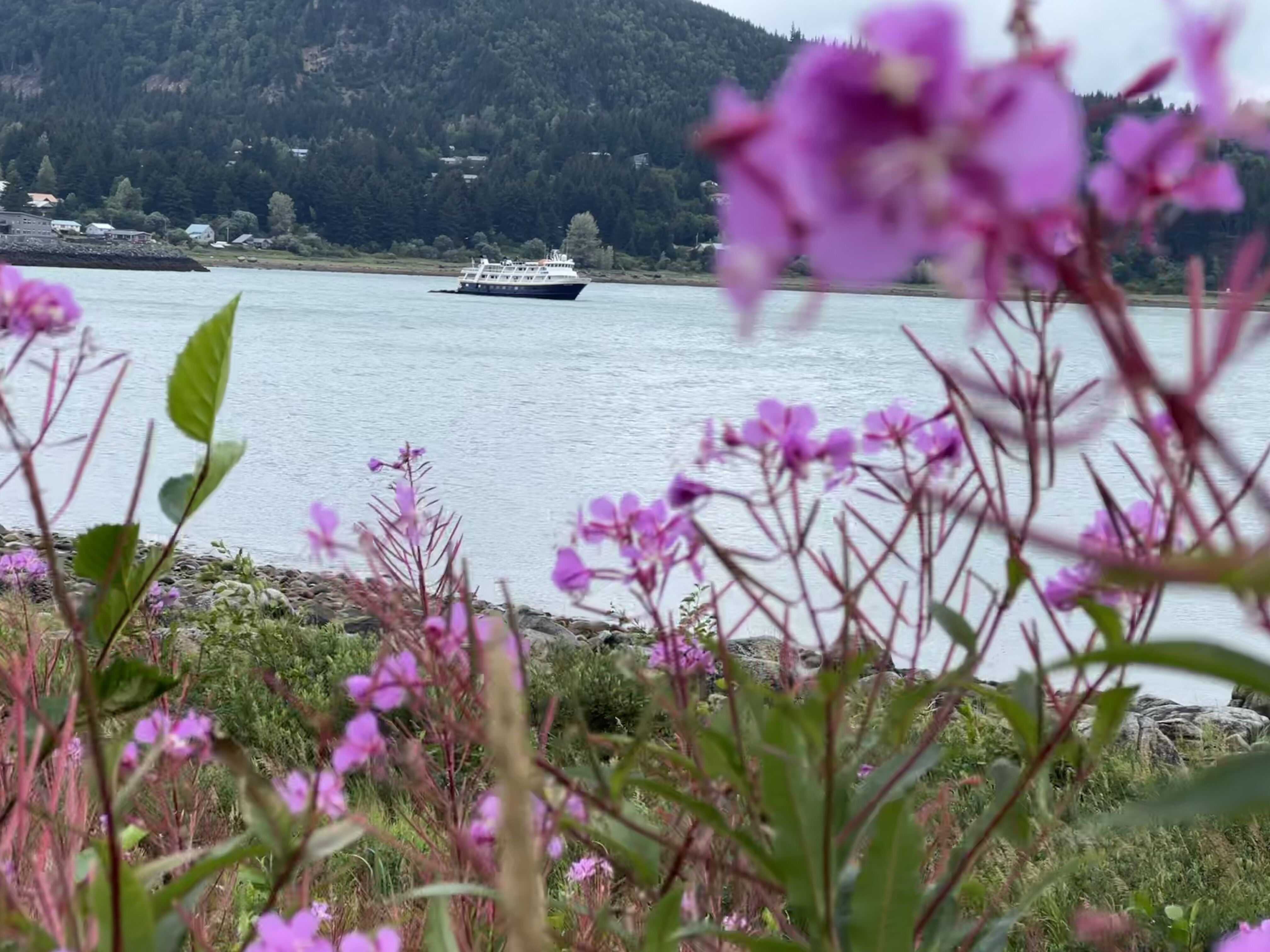 It is day six of our trip, the final full morning of operations before we sail to Sitka. We have missed seeing good views of brown bears. Our expedition leader has a plan that ends up giving us views of bears beyond what we hoped for. Breakfast is early before we hustle to shuttle guests to shore. A ten-minute hike around the point and up the small salmon river is the setting for a fabulous show. There are five brown bears! We observe a pair of subadults and a sow with cubs. At one point, the more aggressive of the cubs starts an unearthly growling noise and tries to nurse on his mum. She is hungry and focused on fishing, and she gives a much louder and more aggressive growl in response, as if to say, “Dinner is ready when I say it is!” The youngster gets the message, and the family moves on. This opportunity to watch such wildlife in silence is a gem within the trip. We witness two successful catches of silver salmon and must refrain from cheering for the bear’s reward. There is much to contemplate as we sail through stormy weather back to port.