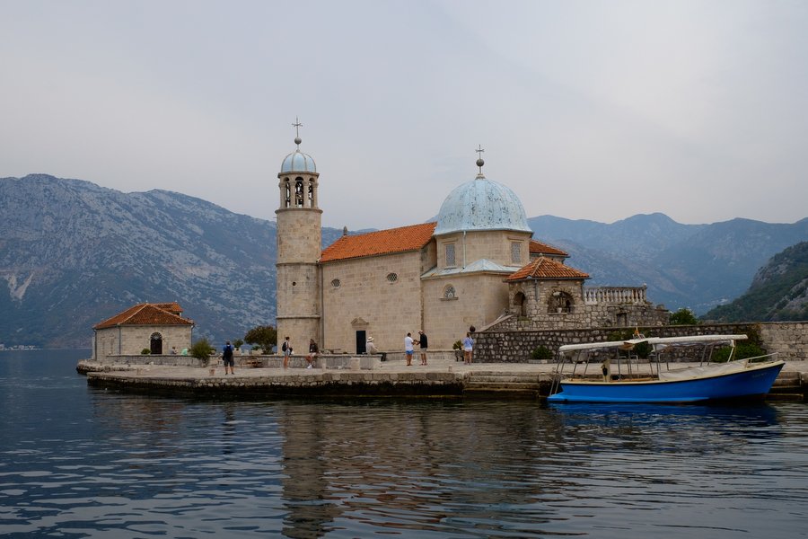 On land we made our way to local boats that ferried us to one of two islands in the middle of the bay, one of which houses Our Lady of the Rock Chapel. On a celebration day annually in July, locals still come to throw stones onto the island, which was artificially made in the 15th century to house a newly discovered miraculous icon of the Madonna and Child. We then crossed the water to Perast, a village rich in Venetian architecture including a bell tower, which matches the one in Piazza San Marco.