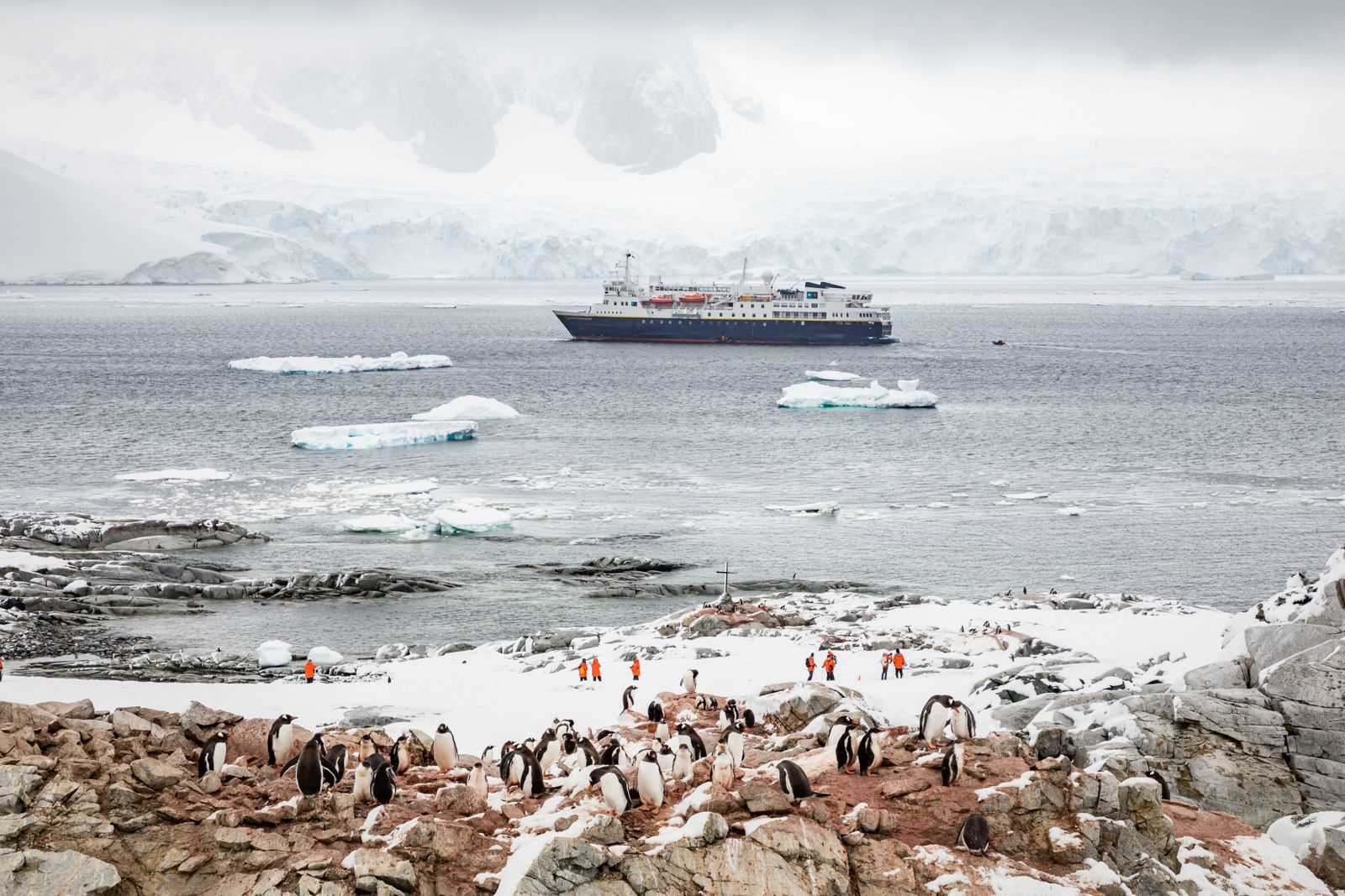 Our landing this morning at Petermann Island felt very ‘Antarctic’ and resembled a winter wonderland for penguins. While snow fell heavily we had plenty of time to roam the rookeries and watch gentoo penguin parents go about their main task at this time of year, keeping their fast-growing chicks protected and well-fed. After another fine lunch we were treated to a very interesting presentation from our Global Perspectives Guest Speaker, Jamling Tenzing Norgay. Jamling is an author, accomplished mountain guide, and the son of Tenzing Norgay Sherpa who made the first successful summit attempt of Mount Everest (Chomolongma) together with Sir Edmund Hillary in 1953.