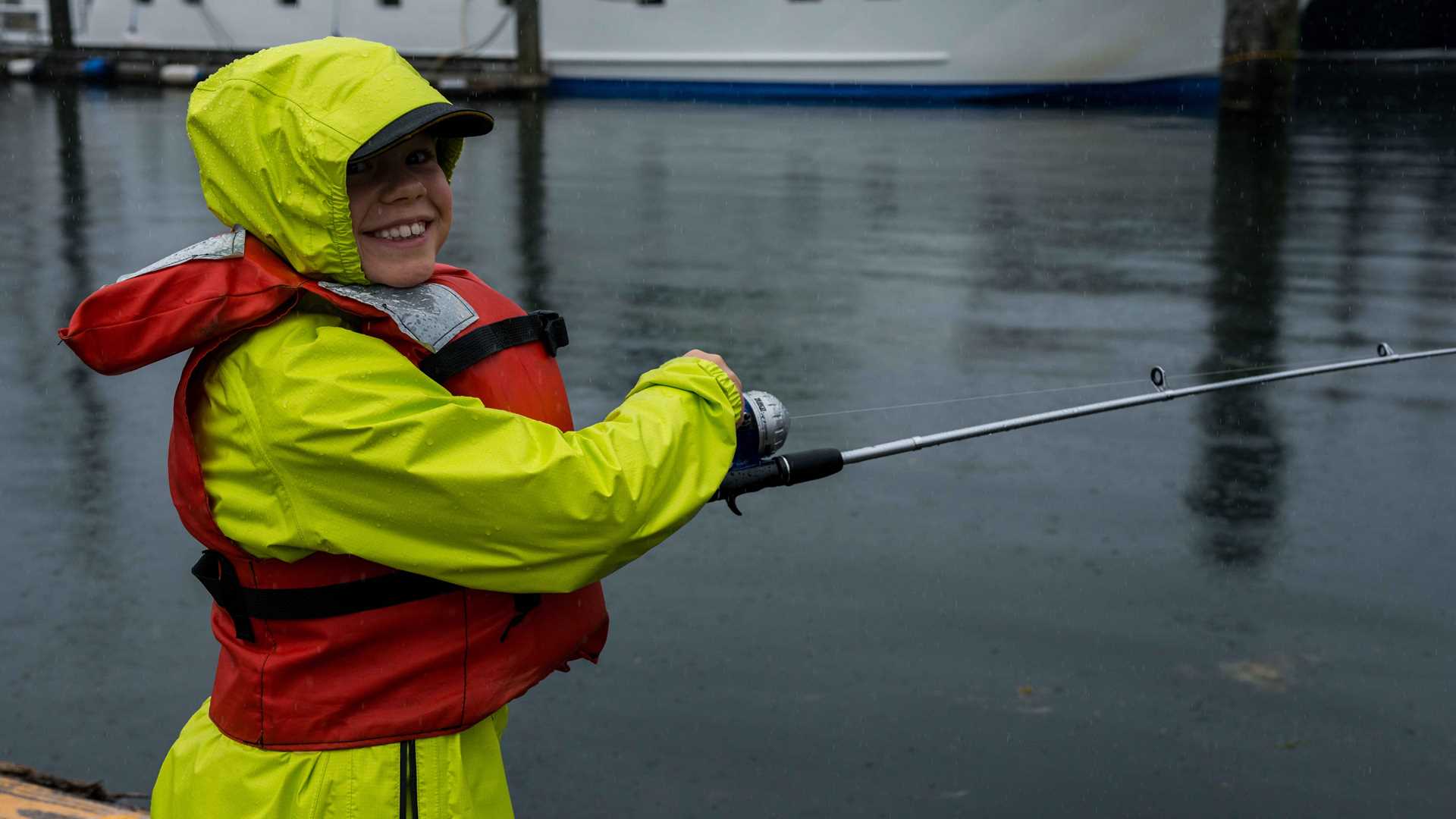 The rest of the day was spent exploring this beautiful fishing town in Southeast Alaska. The exploration was done through various walks. The dock tour was held by our undersea specialist Ana, who gave us an in-depth look at the various types of fisheries this town is so dependent on. Some intrepid explorers ventured into the rain to see the town on bicycles, and my group chose to explore the town through our camera lens on a photo tour to document the town through images. I will get back to my excursion, but before that, I must mention probably the most exciting excursion of the day, although most of us on board were not allowed to participate in it: fishing from the dock. As it turns out, anyone under the age of twelve is allowed to fish from the pier without the requisite fishing license. The rules were that the young fishermen needed to wear their life jackets, and were not allowed to receive any assistance from their parents unless their parents held a valid Alaskan fishing license. The children had to bait the hooks themselves, and in the event that they caught any fish, they would need to remove the fish from the hook and release them back into the sea. Fortunately for some of the young anglers, Dockside Mike, our local security man was available to help with the aforementioned tasks. If you are wondering, fish were caught and smiles were had by all.