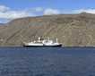 The wind began to agitate the surface of the inlet while clouds snuggled against the higher mountaintops. Ice crystals in the atmosphere formed a rainbow beneath the sun. Moisture began condensing out in Lancaster Sound telling us that maybe the time had come to head to the mother ship. But not before examining a pile of walrus on the rocks and our sleeping bear on shore. Raiding Vikings attacked us, one boat at a time. Thank goodness there was no plundering or pillaging involved. Instead they came bearing gifts of warm cocoa with a shot if so desired.