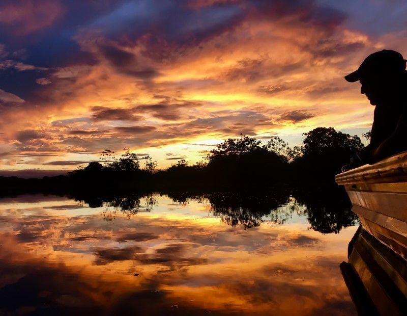 The sun was rising this morning as National Geographic Quest docked in the Port of Golfito. The Standard Fruit Company exported its banana production through the port until the mid-1980s. After this, the company formally began operations in Costa Rica. Ship handling was the main interest of the site, so very little land was used for settlement. Much of the original forest was left in place to guarantee not only the water supply, but also for the delight of those who lived here. After clearing Customs this morning, we went out to explore the mangroves of this beautiful place. Some guests enjoyed Zodiac tours. Other guests desired more exercise, so they observed the mangroves while kayaking. After repositioning the boat inside Golfo Dulce in the afternoon, we explored the trails of Dolphin Quest, a private reserve connected to Piedras Blancas National Park. We observed scarlet macaws, white-faced capuchins, white-lipped peccaries, and several species of small amphibians and reptiles. We were pleased to spot a tree frog called Hyla rosembergii , a species rarely found close to the ground, especially during the day. The day was a success, starting with a beautiful morning and ending with a fantastic sunset.