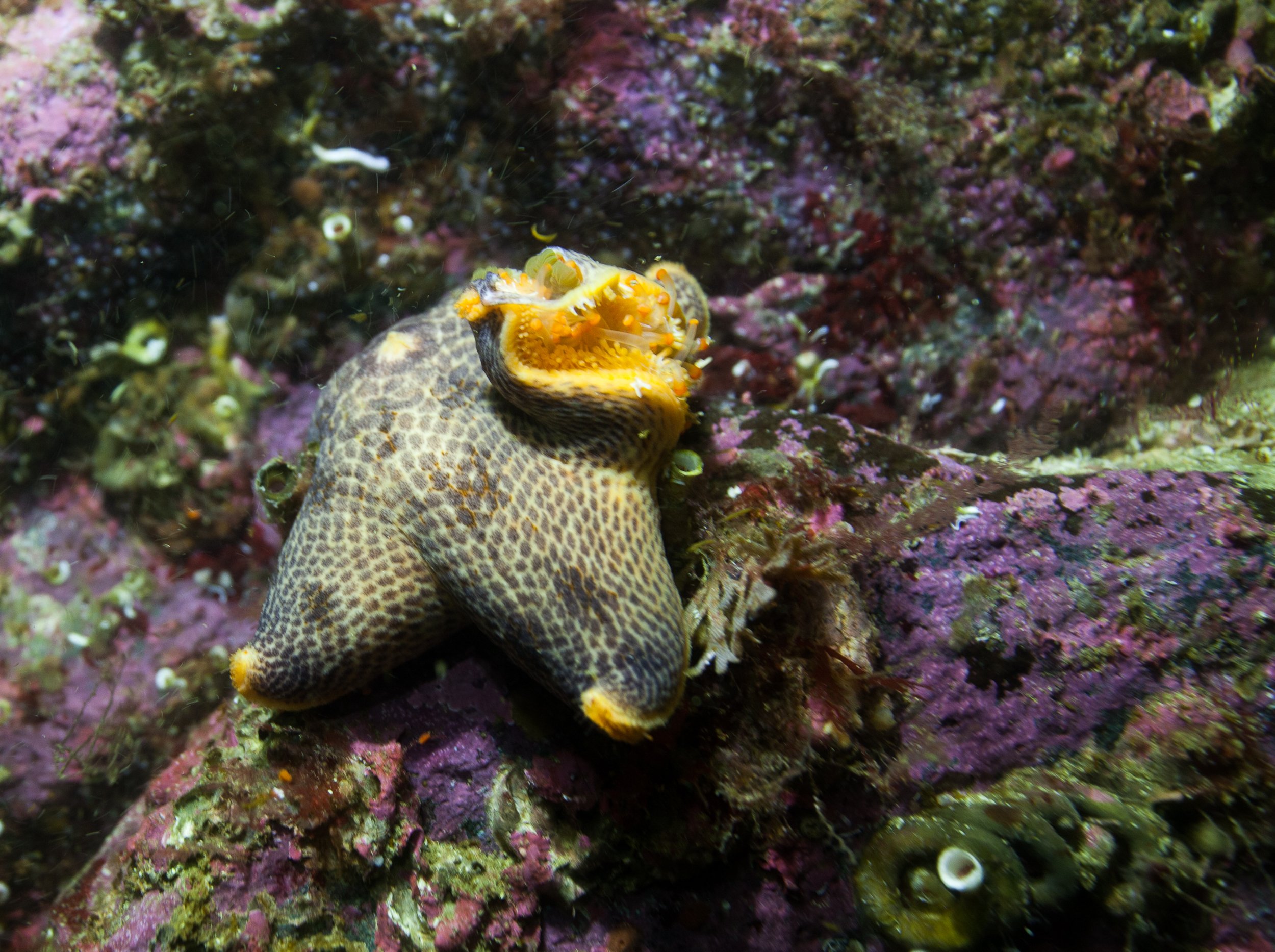 While the hikers and kayakers were out enjoying the day, so were the divers. Each trip with Lindblad Expeditions has an undersea specialist onboard, diving and collecting footage and photos for the guests to enjoy each night. The dive today was fantastic, with sea cucumbers of a couple varieties, rockfish and camouflaged crabs too.