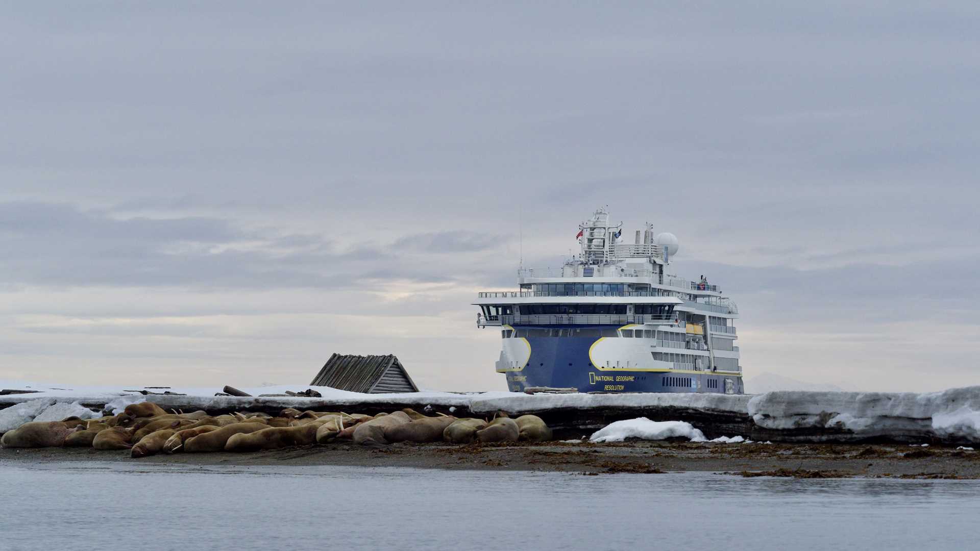 But it’s our turn to get in the Zodiac and head out for the last beautiful exploration of the journey. The air is almost still; as we round the headland, easily recognizable thanks to two big navigational marks, we sight the majestic walruses we have been expecting.