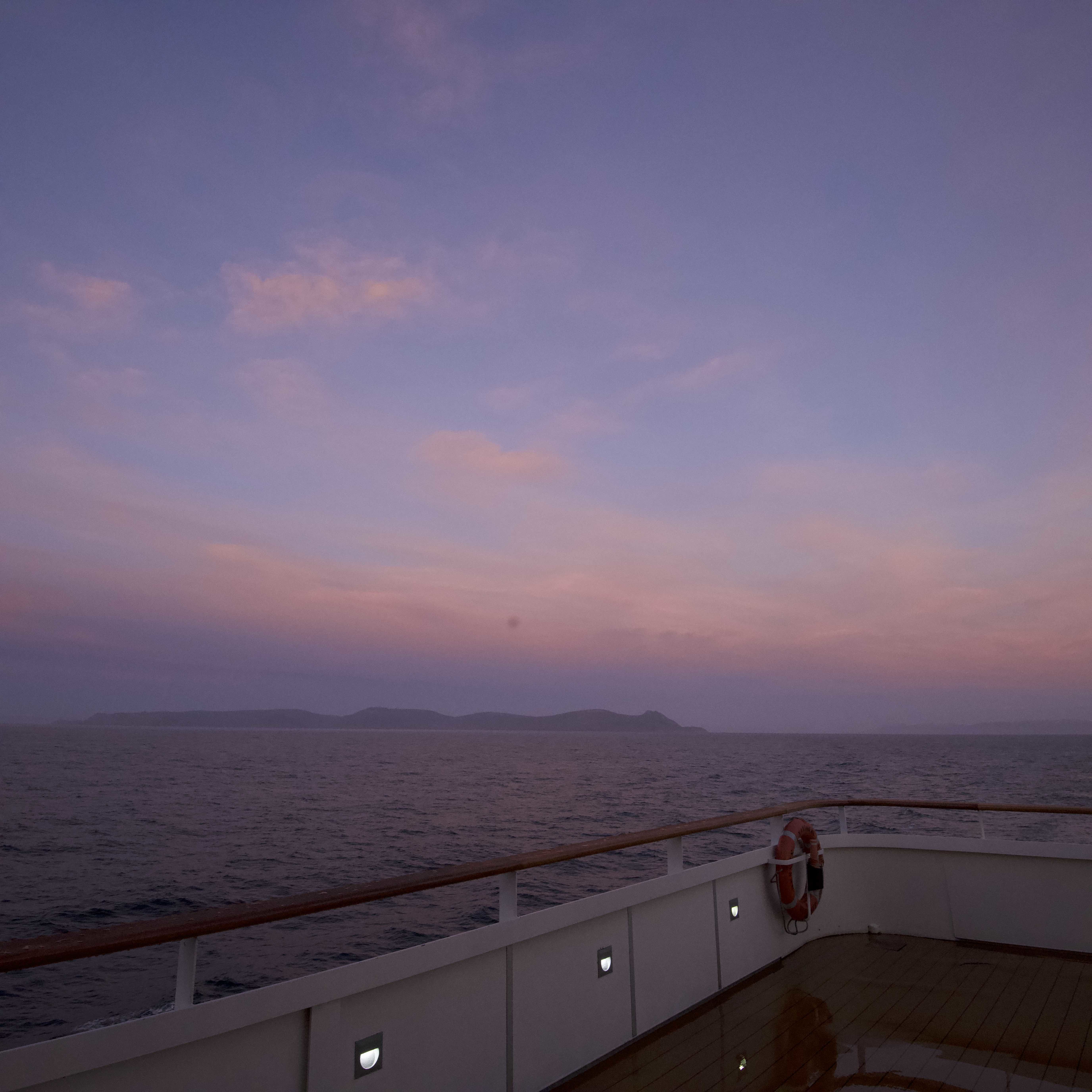 Almost home. Land is in sight as we complete our crossing of the Drake Passage and draw within view of Cape Horn. As sunrise begins to illuminate the clouds, we see the blinking light of the Cabo de Hornos lighthouse. Expedition leader Lucho tells us about the poignant albatross sculpture dedicated to lost mariners and reads us the associated poem in Spanish and English. We are sailing in sheltered waters now, and the sea has reached the balmy temperature of more than 7° C. The seabirds we have learned to recognize in the open ocean–albatrosses, petrels, and prions–are now joined by others, such as imperial shags from Patagonia. Fur seals are once again frolicking near the ship. With formalities complete, there is time for a last series of presentations from our expedition staff, including: a lively account of the world-defining voyage of Ferdinand Magellan by naturalist Madalena Patacho, intriguing ‘Behind the Scenes’ insights into the life of an undersea specialist from Brett Garner, and more about the famous Endurance expedition under the leadership of Sir Ernest Shackleton. After making time for some excellent afternoon Swedish pancakes, we sailed the remaining stretch along the Beagle Channel and came at last to port in Ushuaia. We gathered in the lounge for farewell cocktails with our captain. We celebrated the wonders we experienced over the last ten days, the good friends we traveled with and with whom we shared our discovery of the Antarctic, and the glorious land of Antarctica–the seascapes, history, and wildlife. Where will we travel next? Photo caption: An avian harbinger of the coming day. Photo by Steve Backus