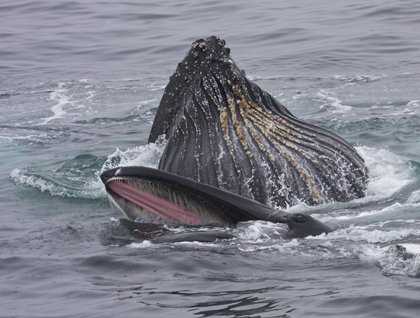 This afternoon, after Jason’s excellent presentation on “Ice” we found a group of humpback whales feeding collectively. Clearly no shortage of food in Dallmann Bay; these whales were consistently surfacing with mouths agape, distended ventral pleats and baleen plates visible on their upper jaws. What a phenomenal view of a species that migrates here from South America to feed in these krill-rich waters!
