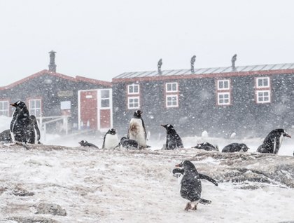 The National Geographic Explorer was docked in the shorefast ice of Port Lockroy - that is, sea ice left over from last winter and still contiguous with the land. One of our activities of the morning involved stepping off the ship for a stroll over the sea ice, leaning into the howling wind. We rotated over to Jougla Point, where Antarctic shags and gentoo penguins ignored the blowing snow to carry on with their breeding activities. This included penguins stealing stones from their neighbor’s nests while their own nests were being similarly pilfered and the shags carrying nesting material to add to the nests and impress their mates. The third stop of the circuit was Bransfield House, the restored Base A, where the collection of period artifacts shows us what life was like for men stationed in the Antarctic in the mid-twentieth century. We hunkered down for the last Zodiac ride back to our ship. Were we put off by the weather? Not at all! To the last person, we were giddy with excitement and grateful for the experience. We had taken what Antarctica could throw at us and we emerged victorious, with stories to share with friends and family back home.